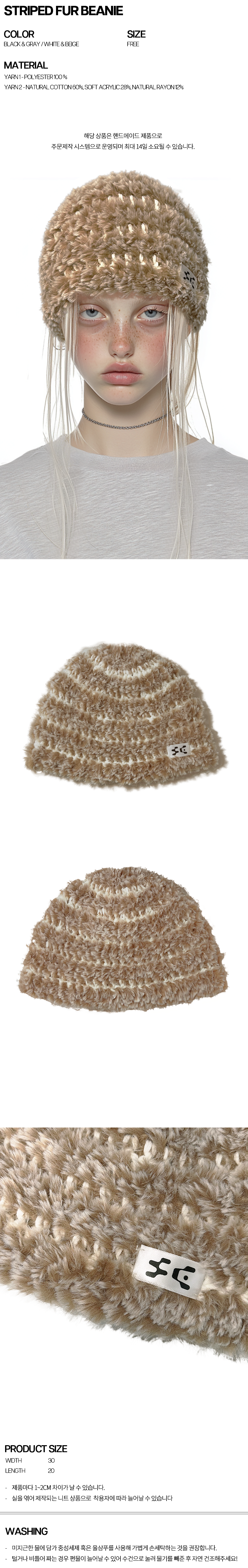 STRIPED FUR BEANIE (WHITE&BEIGE)