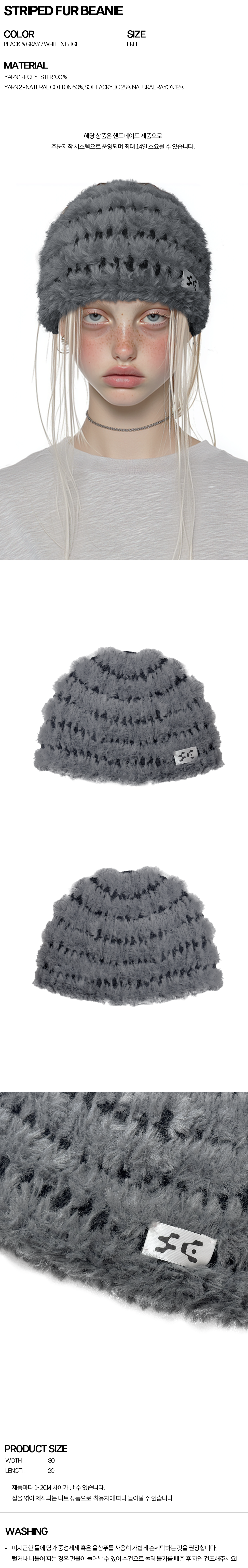 STRIPED FUR BEANIE (BLACK&GRAY)